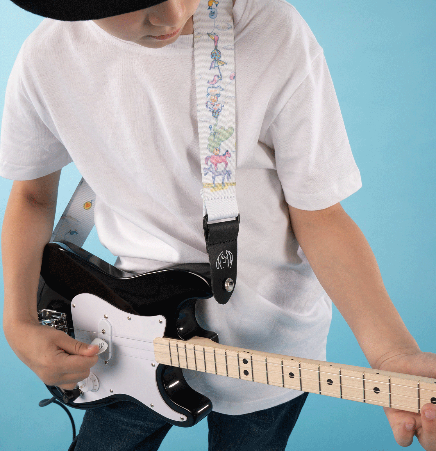 Lennon Art Series Kids Strap features playful artwork based on John Lennon’s original drawings, scaled down for younger players. With an adjustable length from 28" to 48", it offers lightweight comfort, durable construction, and a creative connection to one of music’s most imaginative voices.