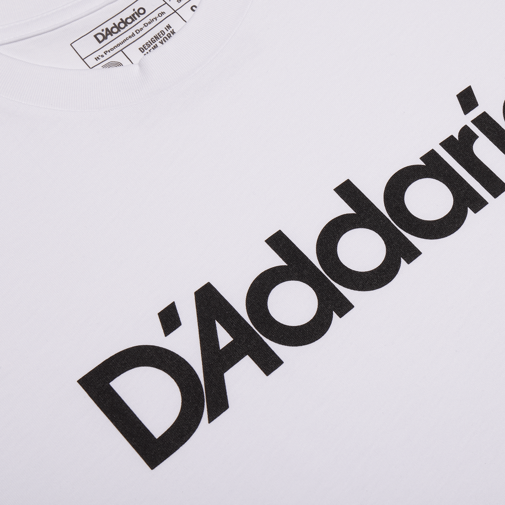 The core D'Addario logo t-shirt features the logo on the front with a D Mark patch sewn near the bottom hem.