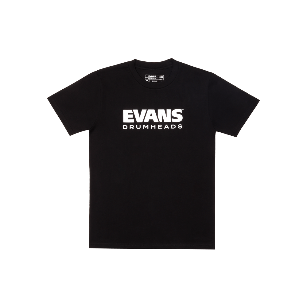 Our core EVANS t-shirt features the EVANS logo on the front and the EVANS Sound Icon System on the back, representing the thickness, treatment, and technology of our drumheads.
