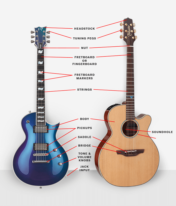 Use this simple diagram to get familiar with the different parts of the guitar. Knowing them will definitely help you on your guitar playing journey.